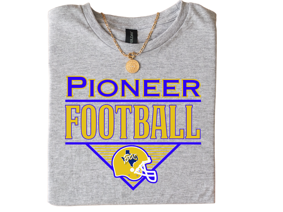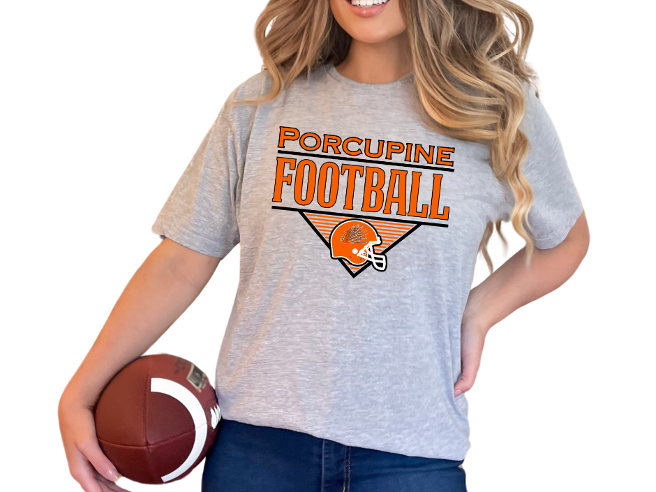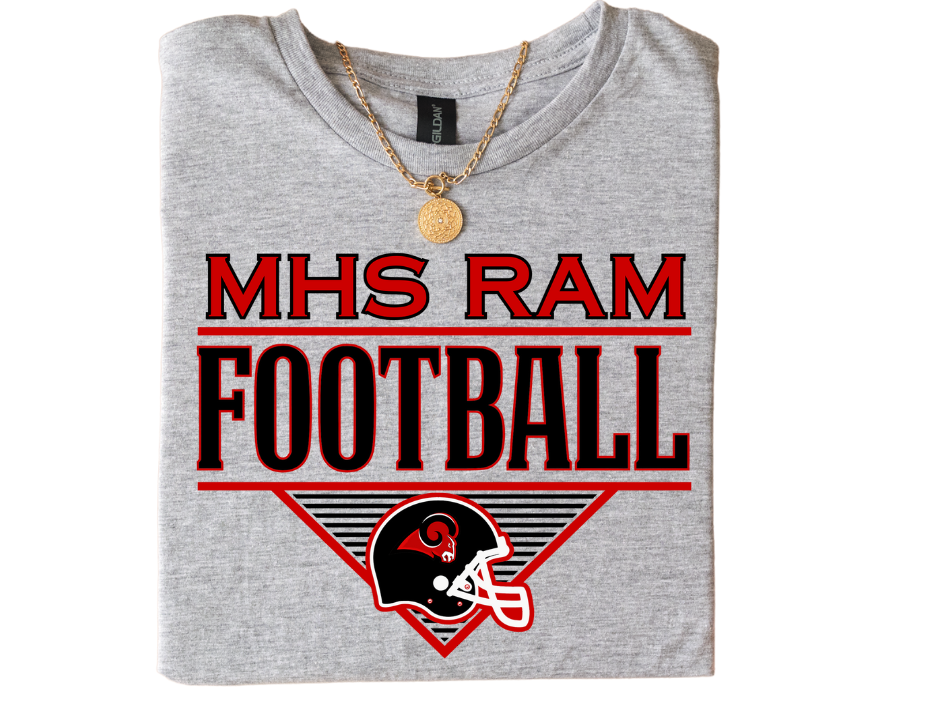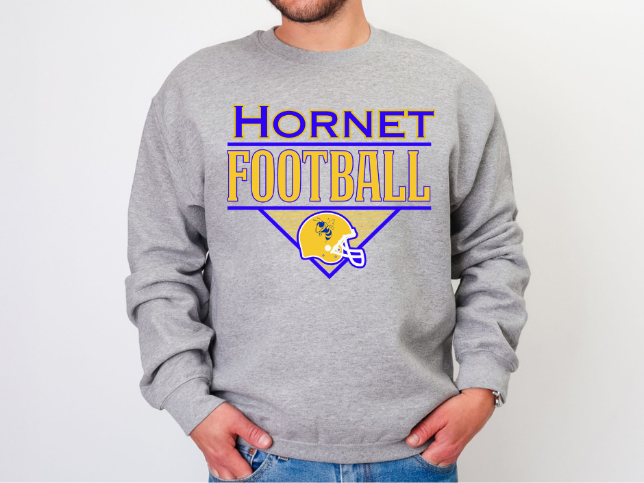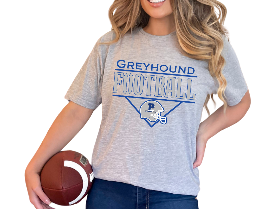 Show up to every game in style with our bold and sporty Modern Mascot Football tee or sweatshirt! Designed to stand out from the crowd, this eye-catching look is a favorite for football moms and dads alike. The modern triangle layout frames a fierce helmet logo while the bold lettering screams team pride.