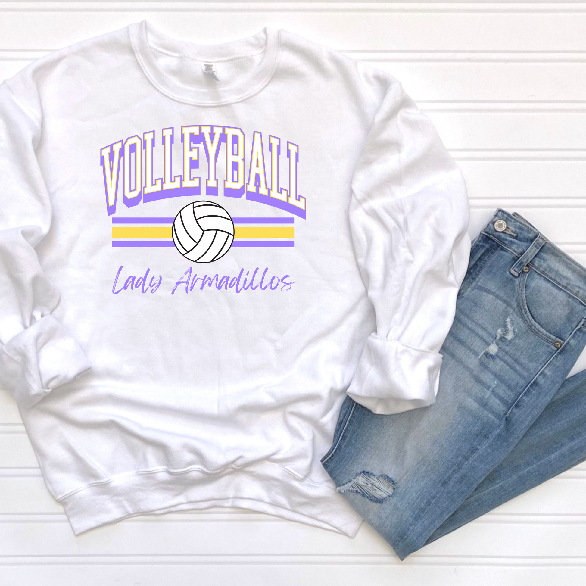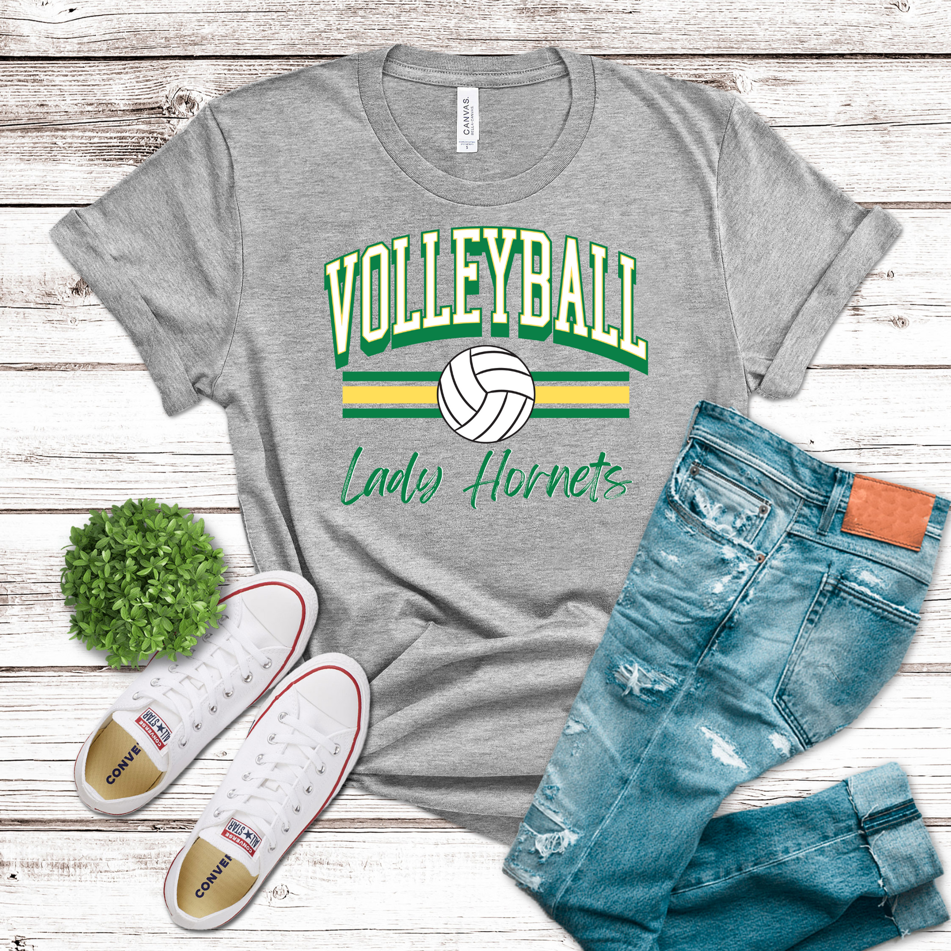 ✅ Eye-catching arched “VOLLEYBALL” graphic with bold mascot lettering