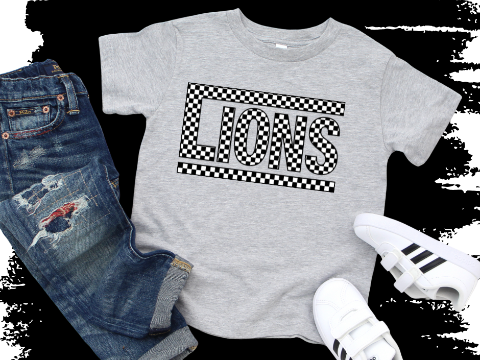 Bring the energy from the stands to the schoolyard with this bold checkered LIONS tee. Perfect for the littlest superfans, it’s all about big spirit and bigger style. The classic black-and-white check pattern pops against the crisp design, making it a standout for pep rallies, game days, and every day in between.