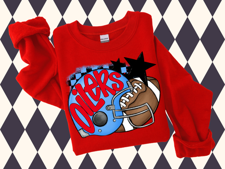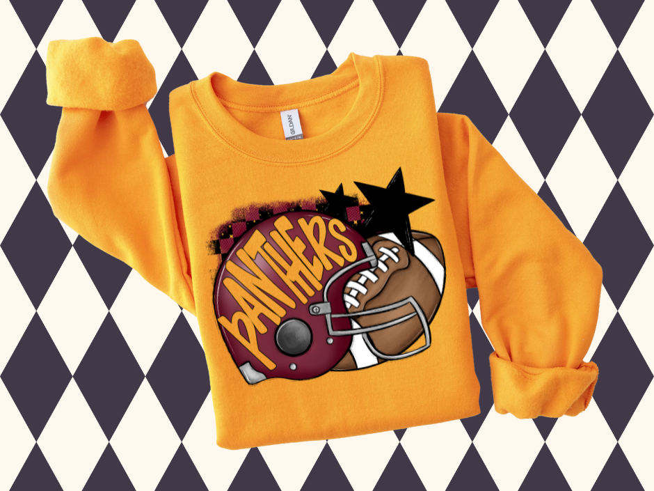 Get game-day ready with this bold and spirited football design—complete with a helmet, stars, and a classic pigskin! Whether you’re in the stands, running the snack shack, or cheering loud from the parking lot, this custom sweatshirt brings the perfect mix of cozy and school pride.