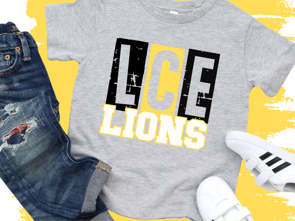 Let your little lion (or your own proud spirit) shine in this bold, blocky LCE Lions design! Perfect for pep rallies, field trips, and any other day, this tee and sweatshirt combo screams school spirit. The distressed block letters and golden pop make it a classic that never goes out of style.